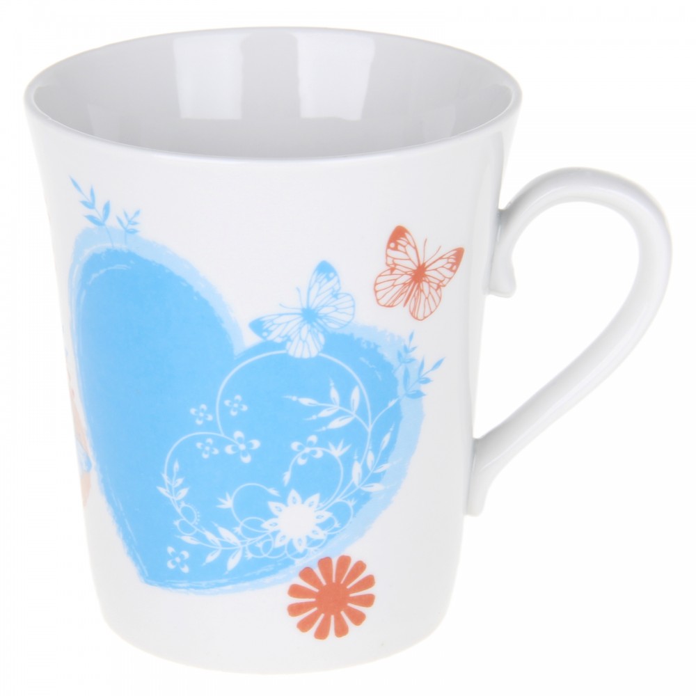 Кружка пришла не с персиковым сердечком, а с фиолетовым. Фарфор тяжелый и серого оттенка. Буду делать возврат.