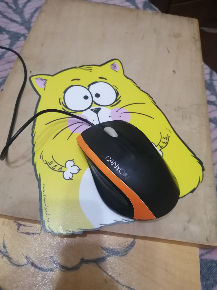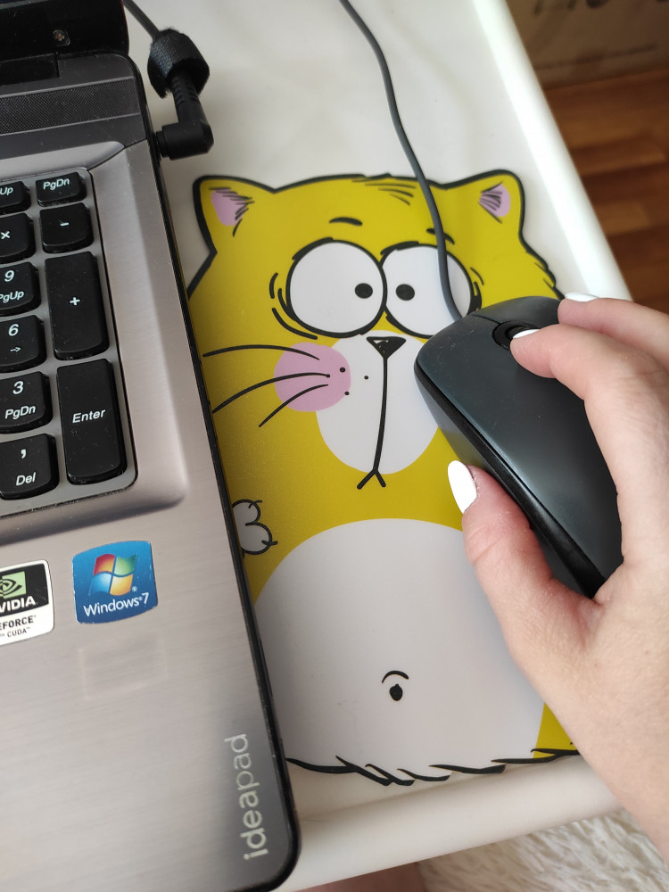 Коврик по размеру в самый раз, симпатичный, яркий, но мышка по нему скользит. Беспроводная еще как-то работает, а проводная, вообще, никак.