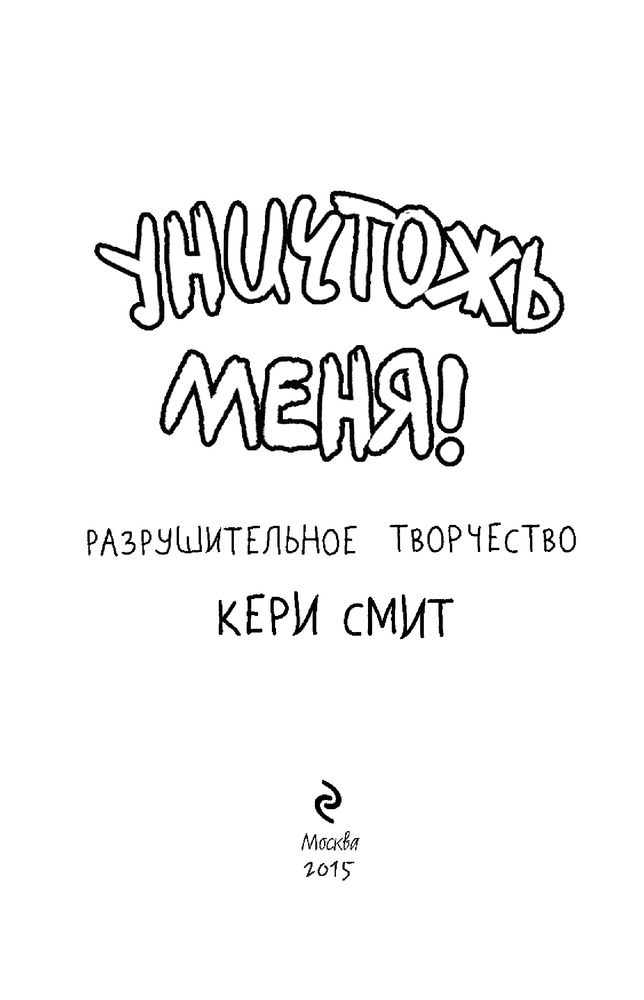 Уничтожь меня! Уникальный блокнот для творческих людей. Разрушительное творчествоВ данный момент этот товар отсутствует в продаже. Возможно, у нас найдется аналогичный или похожий товар здесь. Серия: Блокноты для счастливых людей. Мировой бестселлер Тот самый блокнот «Уничтожь меня!», созданный современной известной художницей Кери Смит, теперь в крафт обложке! Выходит ограниченным тиражом! |