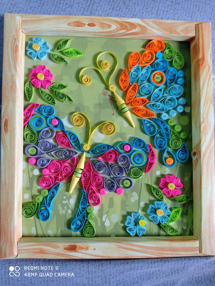 Потрясающее времяпровождение, всей семьей скучивали ленты, но почему то клея не хватило(( Пришлось докупать. А так пано вышло красивое