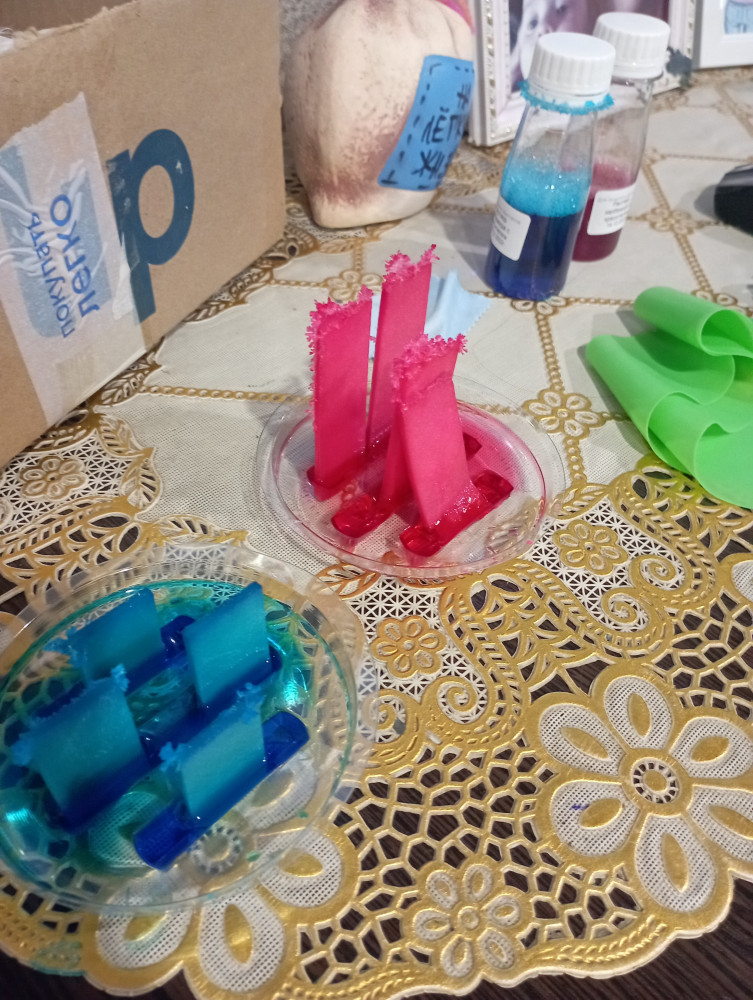 Спустя сутки начали кристаллы ветвится, стоят уже 2 недели.