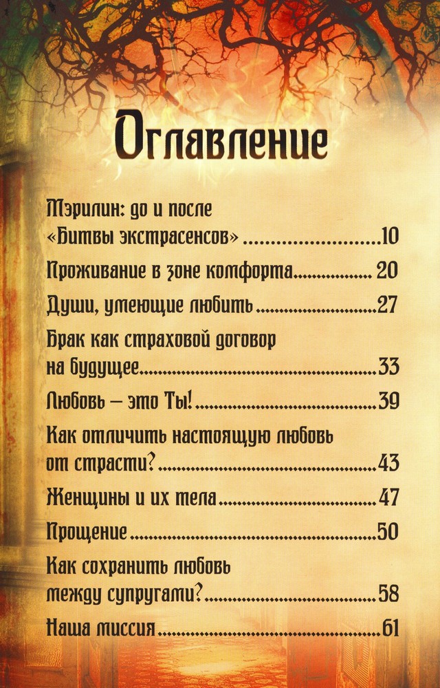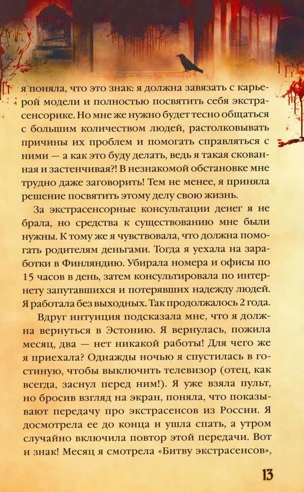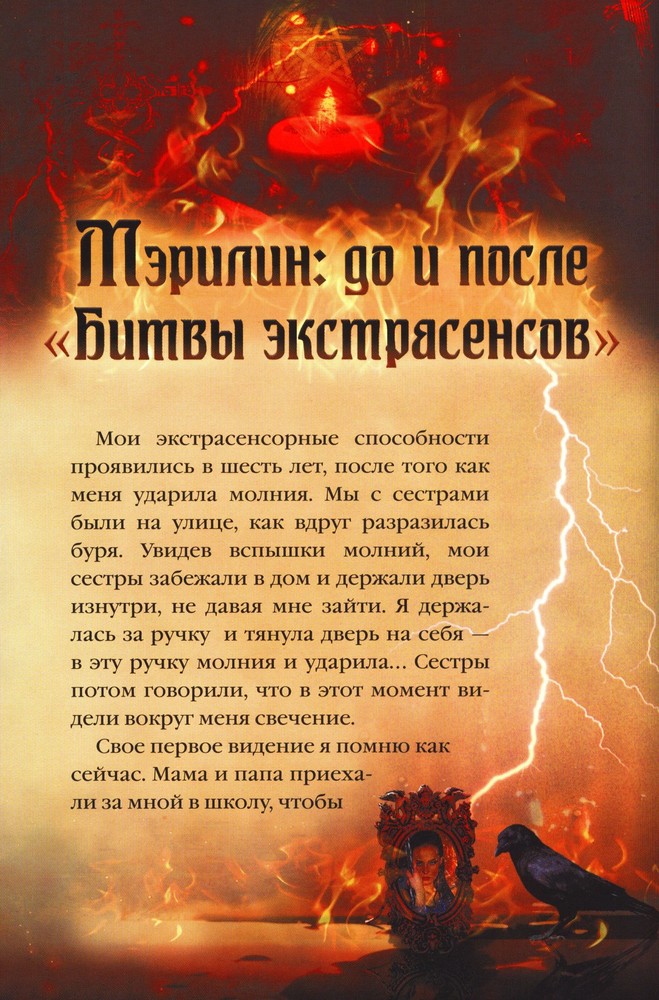 Отражение судьбыВ данный момент этот товар отсутствует в продаже. Возможно, у нас найдется аналогичный или похожий товар здесь. Перед вами — книга Мэрилин Керро, финалистки 14 сезона шоу «Битва экстрасенсов», потомственной ведьмы из Эстонии. |