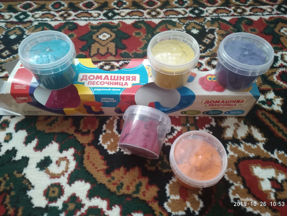 💳 Оплатить за товар можно при получении 🇰🇿 Есть бесплатная доставка по Казахстану от 1 дня 🎁 Копите бонусы с каждой покупки Серия: Домашняя песочница Радужный песок — это цветные песчинки, смешанные с акриловым клеем. Играть с таким песком легко и весело: ведь он не липнет к рукам, не высыхает и не крошится. Большое количество ярких цветов радует глаз и позволяет разнообразить игру. Теперь лепить замки и куличики можно не только на улице, но и дома! |