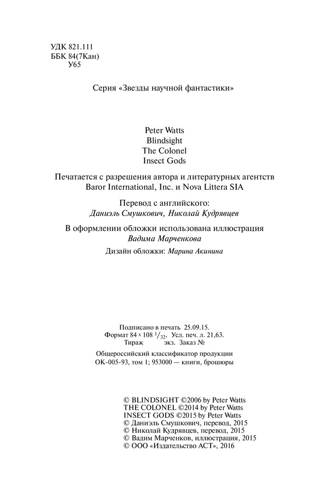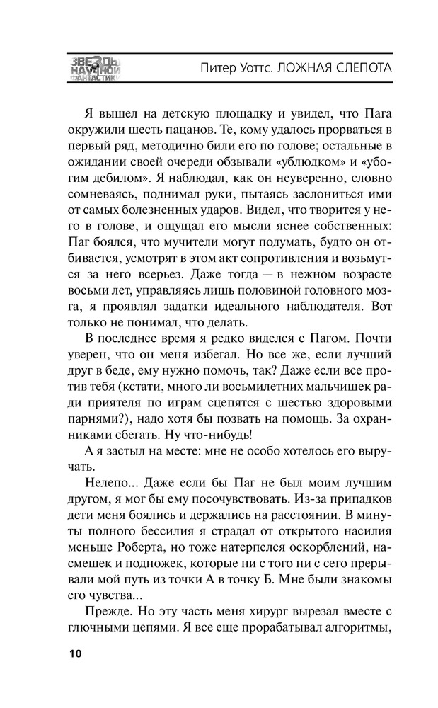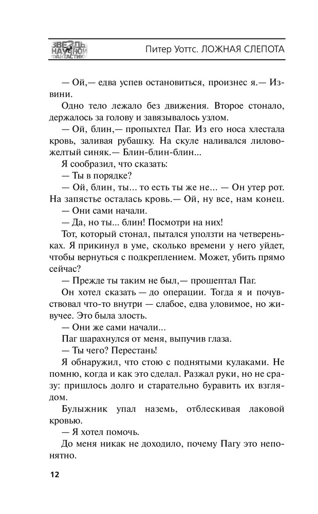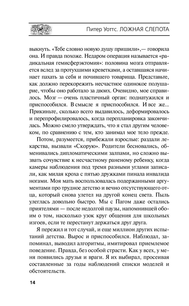 Ложная слепотаВ данный момент этот товар отсутствует в продаже. Возможно, у нас найдется аналогичный или похожий товар здесь. Серия: Звезды научной фантастики В 2082 году человечество убедилось, что оно не одиноко во Вселенной. Бесчисленные разведывательные зонды пришельцев светящейся паутиной окутали Землю. Сгорев в атмосфере, они успели передать сигнал за пределы Солнечной системы. На установление контакта с внеземной цивилизацией направлен корабль «Тезей» с командой из лучших специалистов в своей области. Но, когда исследователи доберутся до цели, они поймут, что самые невероятные фантазии об инопланетном разуме меркнут по сравнению с реальностью, и на кон поставлена судьба Земли и всего человечества. |