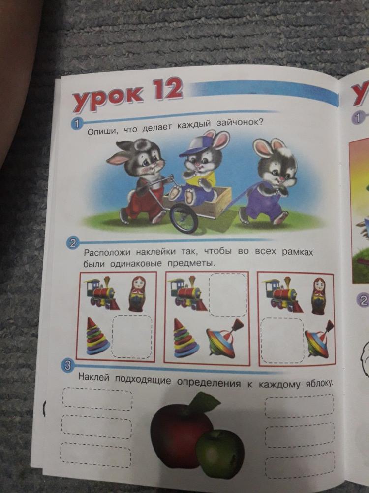 Нам почти 3 года, ребёнок с увлечением выполнял задания, наклеивал картинки с ответом, выучил времена суток и получил много удовольствия. Несколько заданий оставили нетронутыми, вернёмся к ним позже, когда научимся рисовать и получше говорить) Книгу, в целом, рекомендую, хороший материал почти даром!
