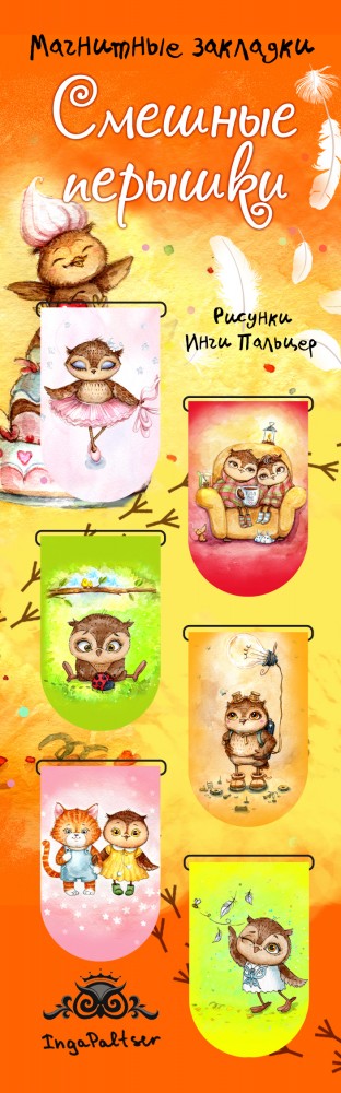 | Магнитные закладки. Совы. Смешные перышки (6 закладок)