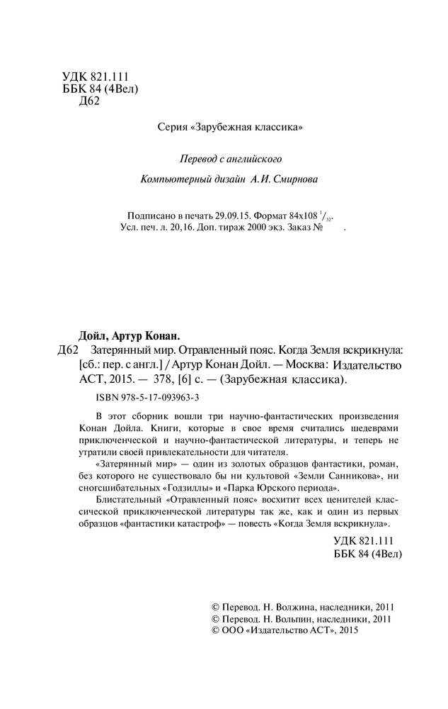 Затерянный мир. Отравленный пояс. Когда Земля вскрикнулаВ данный момент этот товар отсутствует в продаже. Возможно, у нас найдется аналогичный или похожий товар здесь. Серия: Зарубежная классика В этот сборник вошли три научно-фантастических произведения Конан Дойла. Книги, которые в свое время считались шедеврами приключенческой и научно-фантастической литературы, и теперь не утратили своей привлекательности для читателя. «Затерянный мир» — один из золотых образцов фантастики, роман, без которого не существовало бы ни культовой «Земли Санникова», ни сногсшибательных «Годзиллы» и «Парка Юрского периода». Блистательный «Отравленный пояс» восхитит всех ценителей клас-сической приключенческой литературы так же, как и один из первых образцов «фантастики катастроф» — повесть «Когда Земля вскрикнула». |