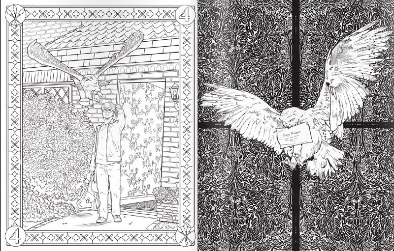 Замечательная раскраска! Удивительно красивые картинки на слегка пожелтевшей бумаге. Будет интересна творческим людям любого возраста. Последние листы раскраски содержат цветные фото сюжетов фильма. Великолепный подарок поклонникам Гарри Поттера.