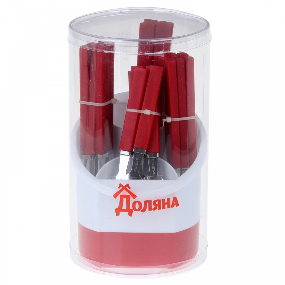 | Доляна Набор столовых приборов «Шале» на подставке, 24 предмета, цвет красный