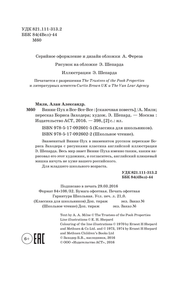 В данный момент этот товар отсутствует в продаже. Возможно, у нас найдется аналогичный или похожий товар здесь. Серия: Классика для школьников Одна из самых прелестных сказок в истории мировой литературы. Забавная и очаровательная история медвежонка-поэта и его друзей, обитающих в таинственном Зачарованном Лесу.