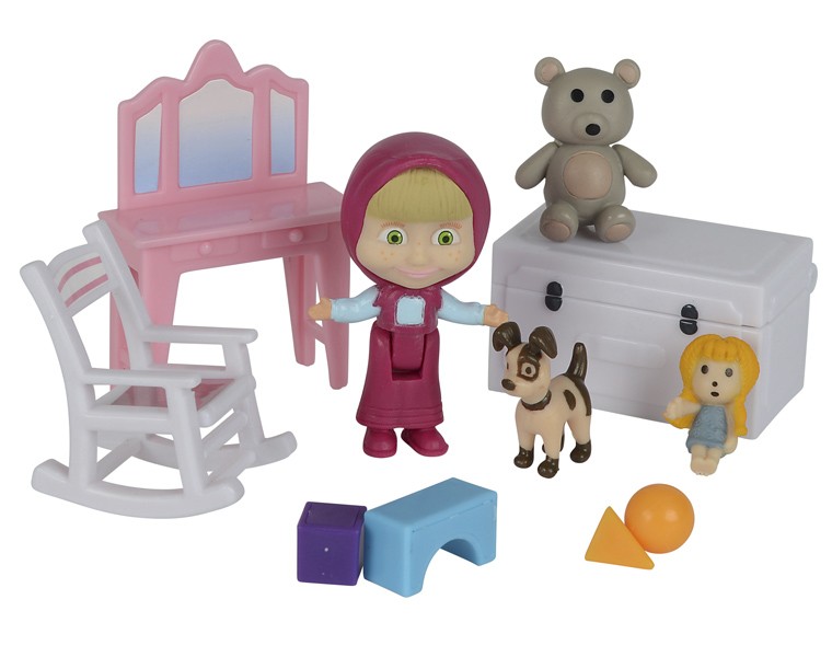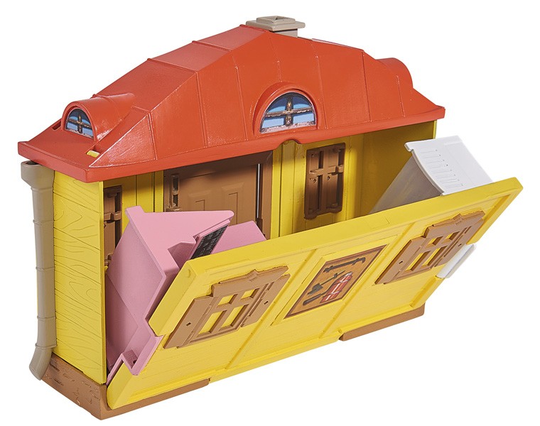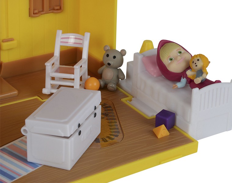 Домик складной, моя дочка 4,5 года играет с удовольствием, у Маши сгибаются ноги - можно садить в кресло-качалку, сундучок открывается, шкафчик тоже, дверь у домика закрывается на щеколду, фигурки как на картинке, покупали со скидкой, взяли на новый год, советую всем.