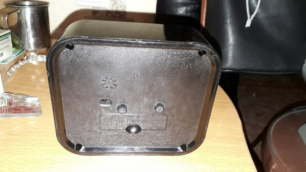 Будильник самый обыкновенный, отключение звонка сзади, что не очень удобно. Звук резкий.