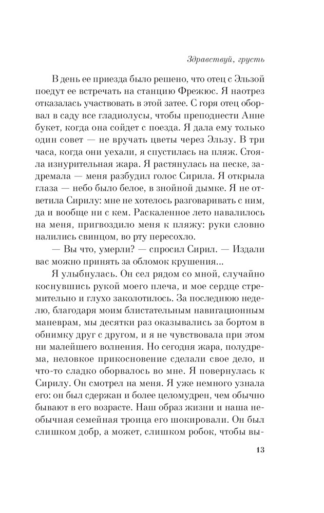 Прочитав другие отзывы, думала, что эта книга будет такой, которой можно зачитаться. Объем небольшой. Описания летнего дня, пляжа, каких-то чувств хороши, но сама композиция романа мне совсем не понравилась. Наверное, эта та книга, которую можно прочесть лишь один раз и окунуться в эти летние дни. Но ни сам сюжет, ни финал меня не привлекли.