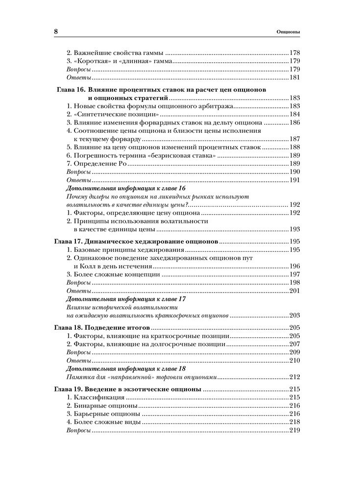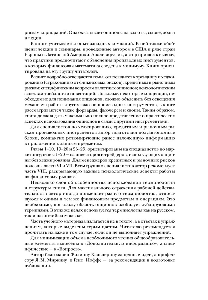 Книга кандидата экономических наук Саймона Вайна, члена правления АльфаБанка и руководителя Инвестиционнобанковского блока, служит источником уникальной информации для специалистов по срочным операциям на фондовом и валютном рынках. Решения многих проблем, приведенные в этой книге, нельзя найти ни в российской, ни в западной литературе. Поэтому первое издание книги было опубликовано в США на английском языке и вошло в списки рекомендованной литературы ряда западных университетов, включая Кембридж. Важными особенностями книги являются ее практическая направленность и удобство восприятия: по каждой теме даны упражнения, помогающие закрепить пройденный материал.