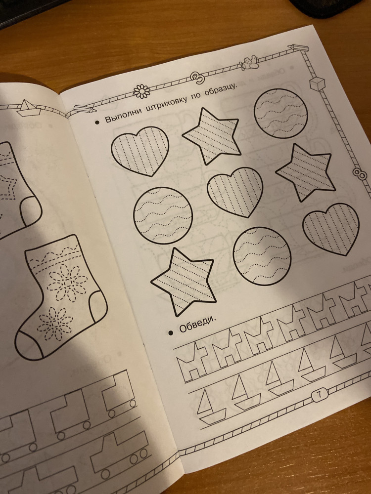 Сыну около 5 лет нравится рисовать узоры из этой тетради. Сам выбирает картинку и обводит. И я довольна этой покупкой.