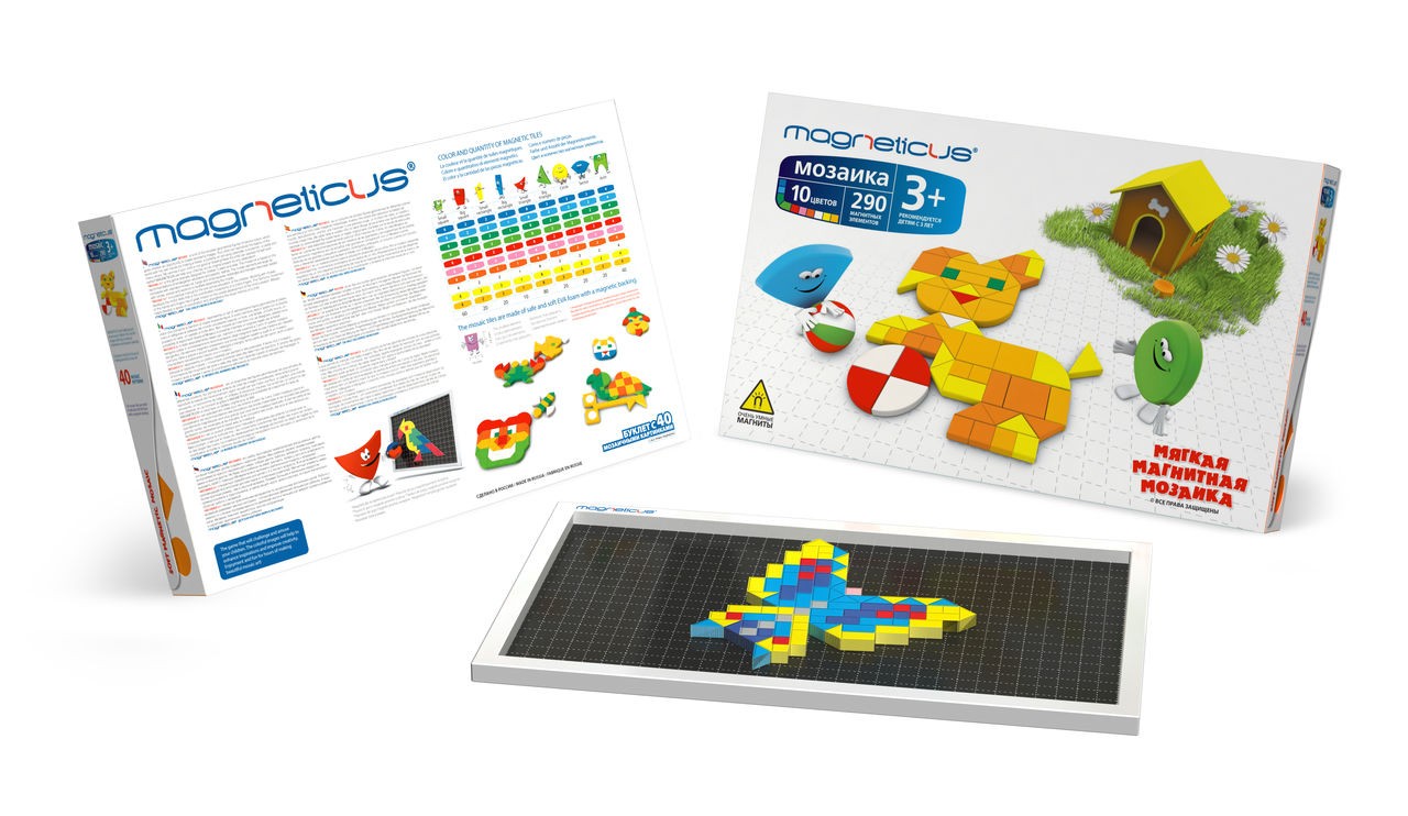 Magneticus Магнитная мозаикаВ данный момент этот товар отсутствует в продаже. Возможно, у нас найдется аналогичный или похожий товар здесь. В этой мозаике учтены рекомендаций воспитателей детских садов и пожелания родителей. Магнитные элементы имею более крупный размер, чем в обычной мозаике. Помимо больших и маленьких квадратов, прямоугольников и треугольников, в набор входят круги, арки и сектора, которые значительно облегчат работу с мозаикой. Является практическим материалом по дошкольному воспитанию детей. Работа с мозаикой развивает мелкую моторику – согласованные движения пальцев рук ребенка. А ведь именно от степени сформированности движений кисти и пальцев рук зависит уровень развития речи. Мозаика помогает выработать чувство координации и укрепляет зрительную память ребенка. Мозаичные элементы из безопасного и мягкого материала (EVA) с магнитным слоем. Познакомьте ребенка с цветами мозаики и названиями геометрических фигур, рассмотрите инструкцию, входящую в набор. К набору из 290 элементов прилагается книжечка с 40 готовыми этюдами, которые можно собрать из этого количества деталей. Покажите ребенку, как детали мозаики примагничиваются к планшету. Давайте ему задания по принципу «от простого к сложному» и понаблюдайте за его первыми достижениями. Предоставьте ребенку возможность придумать и собрать свои рисунки. |