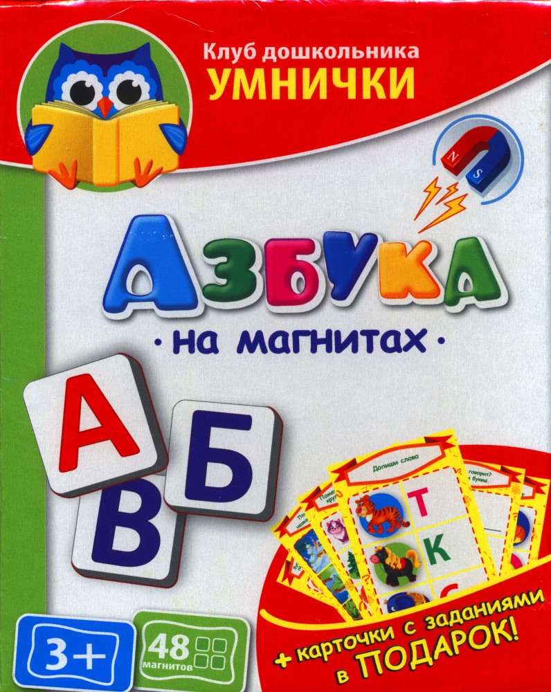 Состав: мягкие магниты — 48 шт, карточки с заданиями — 6 шт.