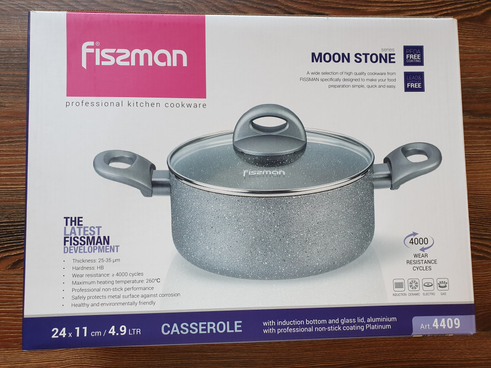 Fissman Кастрюля «Moon Stone»В данный момент этот товар отсутствует в продаже. Возможно, у нас найдется аналогичный или похожий товар здесь. Серия: Moon Stone Кастрюля изготовлена из литого аллюминия с многослойным антипригарным покрытием «platinum». Главное преимущество покрытия — это система многослойного сверхпрочного покрытия из нескольких слоев каменной крошки на основе минеральных компонентов. Такое антипригарное покрытие безопасно для здоровья человека и окружающей среды. Кастрюля обладает великолепными антипригарными свойствами, она долговечна, износостойка. В такой кастрюле Вы можете не только варить пищу, но также тушить и жарить. Удобные ручки из бакелита приятны на ощупь и не скользят в руках. Тщательно подогнанная крышка надежно удерживает тепло. |