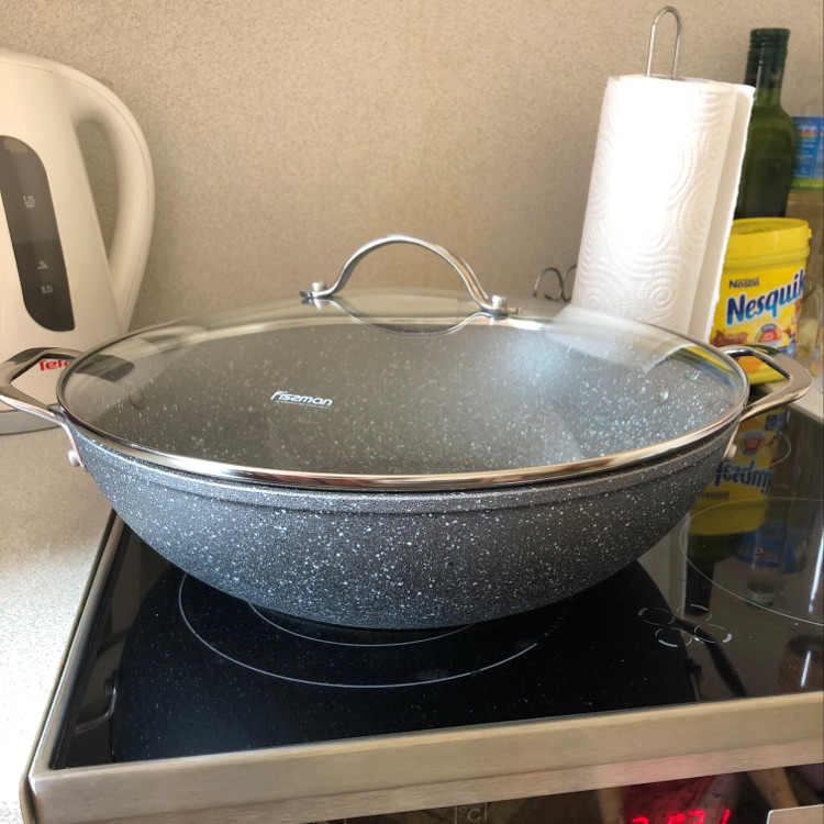 Классный вок. Долго выбирала, остановилась на этом. Помогли отзывы, спасибо тем, кто их оставляет. На индукционной плите очень быстро греется, хорошо тушить мясо, овощи, очень удобный. Ручки греются, моется хорошо. Брала со скидкой. Флип как всегда на высоте.