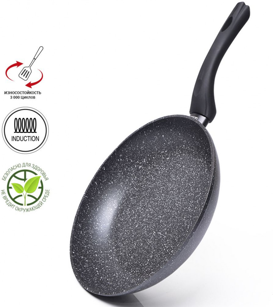 Fissman Сковорода для жарки «Fiore»В данный момент этот товар отсутствует в продаже. Возможно, у нас найдется аналогичный или похожий товар здесь. Серия: Fiore Мраморная сковорода будет служить вам долгие годы благодаря стойкому антипригарному покрытию с добавлением мраморной крошки. Такая сковорода не боится закругленных металлических предметов, что позволит вам перемешивать пищу металлической ложкой. Сочетание литого алюминия с мраморным антипригарным покрытием дает равномерное прогревание сковороды, что позволяет избежать не дожаренных продуктов. Такая сковорода быстро прогревается и долго не остывает, что позволяет сократить время приготовления. Удобная не скользящая бакелитовая ручка понравится даже самым требовательным хозяйкам. |