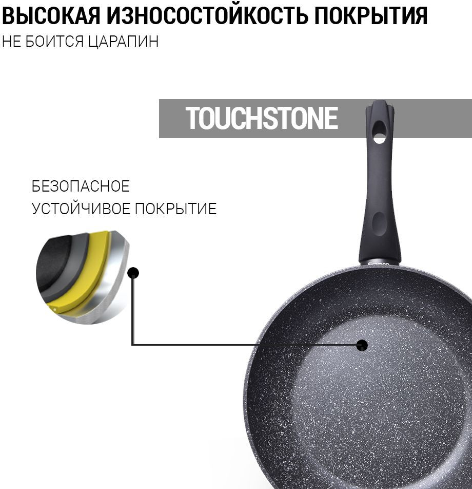 Сковорода по качеству хорошая.Но...Брала несколько крышек такого же диаметра 24см,но ни одна из них не подошла, так сковорода на примерно на 0.2-0.5мм больше размером.Очень жаль, что вплотную не закрывается крышка. При покупке проверяйте, закажите сразу и крышку, чтобы не было подобной ситуации.