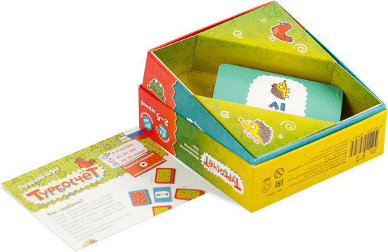 Замечательная игра! Есть три уровня сложности, нам 4 года, мы пока играем картами с 1 точкой. Ребенку нравится, польза игры очевидна, рекомендую!
