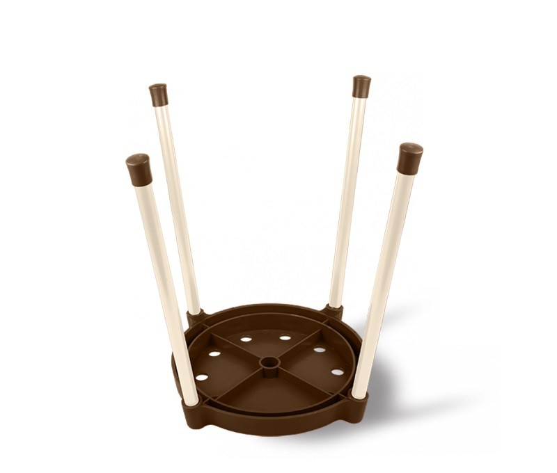 Табурет легко собирается, ножки вставляются в пазы и на них надеваются защитные колпачки. Очень легкий, удобно отсоединять ножки и хранить. Пластик хорошего качества.