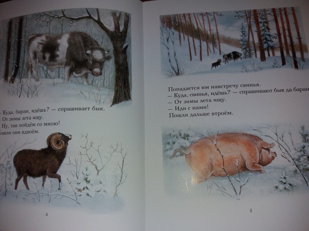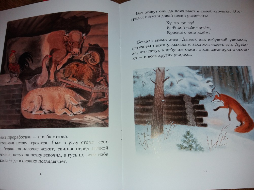 Зимовье зверей. Русская народная сказкаВ данный момент этот товар отсутствует в продаже. Возможно, у нас найдется аналогичный или похожий товар здесь. Серия: Тонкие шедевры для самых маленьких Однажды повстречались в лесу бык, баран, свинья, гусь и петух. Каждый ушёл со своего двора «от зимы лета искать». Чтобы укрыться от холодов, они усердно потрудились и построили себе тёплую избу. На беду прознали о них лиса, волк и медведь. Задумали они напасть на избушку, всех съесть, а потом самим пожить в тепле. Но, как положено в сказках, добро всегда побеждает зло. Дружные звери прогнали алчных хищников и зажили себе, горя не зная. |