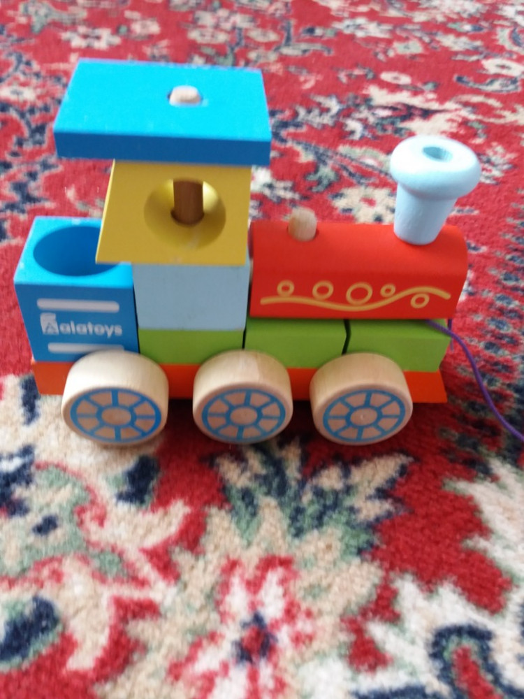 Очень очень хороший конструктор- паровоз. Ребёнку интересно детали вынимать и вставлять. Ещё приделали верёвочку так возит везде за собой.