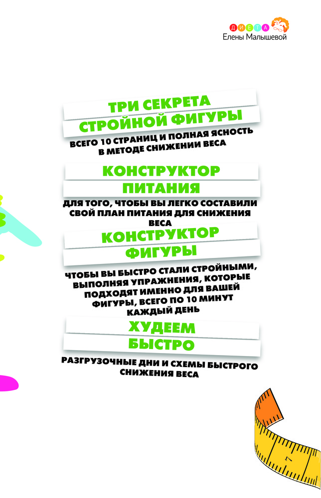 💳 Оплатить за товар можно при получении 🇰🇿 Есть бесплатная доставка по Казахстану от 1 дня 🎁 Копите бонусы с каждой покупки «Диета Елены Малышевой» для тех, кто хочет похудеть без голодовок и изнурительных диет, у кого нет времени тратить часы в спортзале, но мечтает стать обладателем стройной фигуры и удержать вес! |
