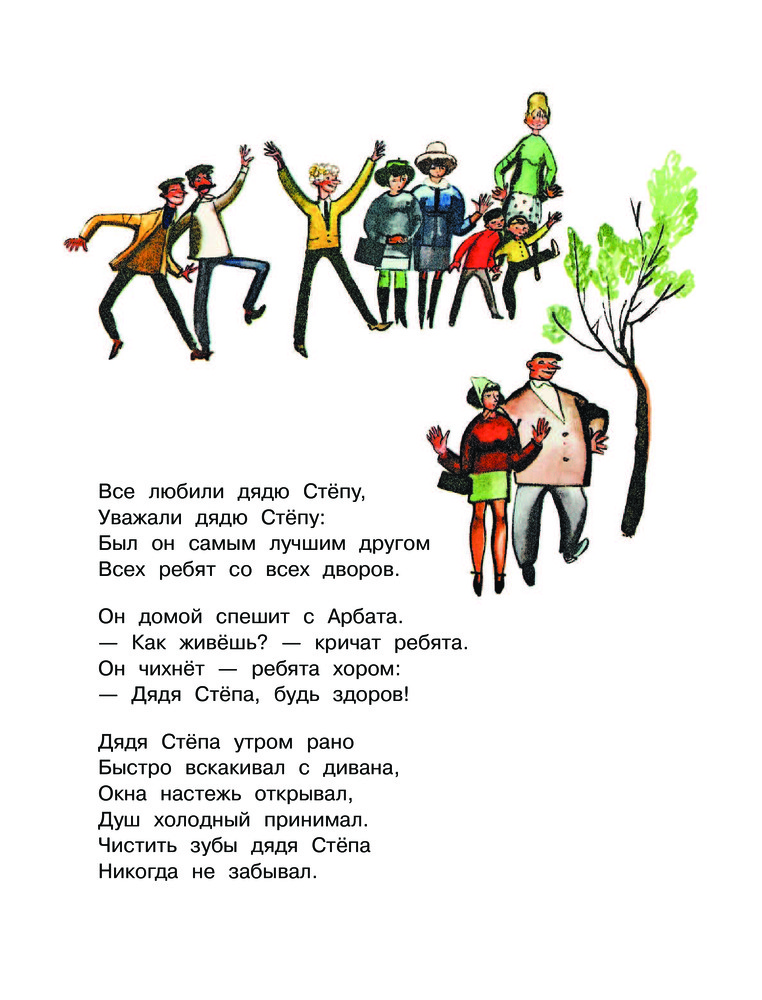 Дядя СтёпаВ данный момент этот товар отсутствует в продаже. Возможно, у нас найдется аналогичный или похожий товар здесь. Серия: Самые лучшие сказки В 1935 году Сергей Владимирович Михалков (1913 — 2009) опубликовал «Дядю Стёпу». Очень скоро поэма стала классикой советской детской литературы. Дети полюбили этого литературного героя и просили поэта написать новые истории про него. Так появились истории: «Дядя Стёпа — милиционер», «Дядя Стёпа и Егор» и «Дядя Стёпа — ветеран». В нашей книге опубликованы только три части, которые были проиллюстрированы лёгкими рисунками Фёдора Лемкуля. В книге также есть несколько стихотворных историй «А что у вас?», «Весёлый турист» и другие. |