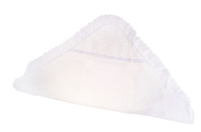 Пришёл не белый цвет кружева как на фото, а цветное (голубой, розовый, желтый). Качество пеленки ужасное, марля марлей...