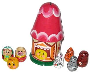 Пальчиковый кукольный театр состоит из деревянных фигурок ручной росписи - героев русской сказки, с отверстиями для детских пальчиков. Взрослому человеку эти наперстки подойдут только на мизинец. Зато детям они в самый раз – легкие, небольшого размера, они смогут использоваться в самых разнообразных играх. Самым маленьким деткам (1,5–2 годика) можно предложить научить сказочных героев здороваться: сгибать и разгибать пальчик, на который надета та или иная фигурка. Такая пальчиковая игра полезна не только для развития моторики, но и речи, фантазии и воображения. Другой вариант этой игры, когда фигурки надеваются на все пять пальчиков и персонажи начинают здороваться хором или поочередно с каждым, кланяясь друг другу.