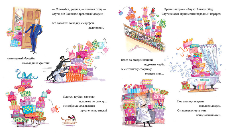 Таких избалованных принцесс, как наша, ещё поискать. И уж точно другие принцессы не получают в день рождения столько замечательных вещей. Но знаете, что? Порой даже у принцесс бывает перебор с подарками. И тогда каждая принцесса, даже самая капризная и жадная, вдруг понимает: а ведь вещи-то – не самое главное в жизни!