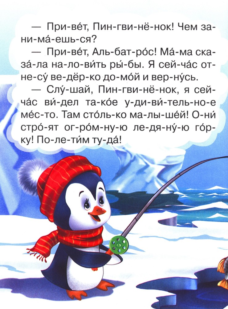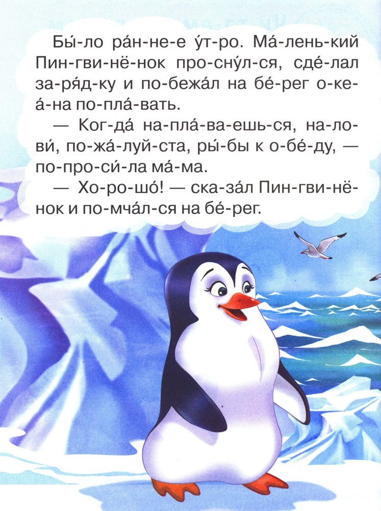 Приключения пингвиненкаВ данный момент этот товар отсутствует в продаже. Возможно, у нас найдется аналогичный или похожий товар здесь. Серия: Читаем по слогам Представляем вашему вниманию серию книг для детей от 4 лет «Читаем по слогам». В ней представлены адаптированные тексты небольших рассказов и сказок. Предложения набраны крупным шрифтом, а слова разделены на слоги. Все это поможет лучше понимать содержание текстов в период обучения чтению. |
