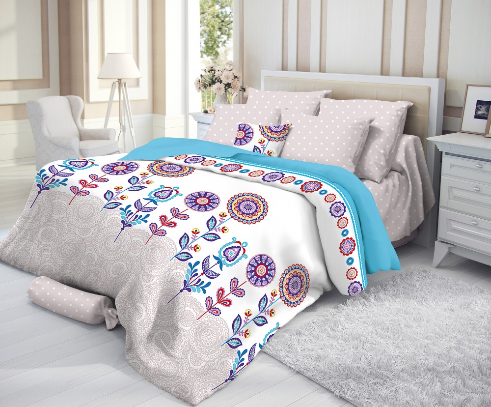 На фото комплект выглядит более нарядным и стильным. В жизни простоват. Но все-равно понравился, освежает интерьер спальни. Ткань очень приятная. Рекомендую.