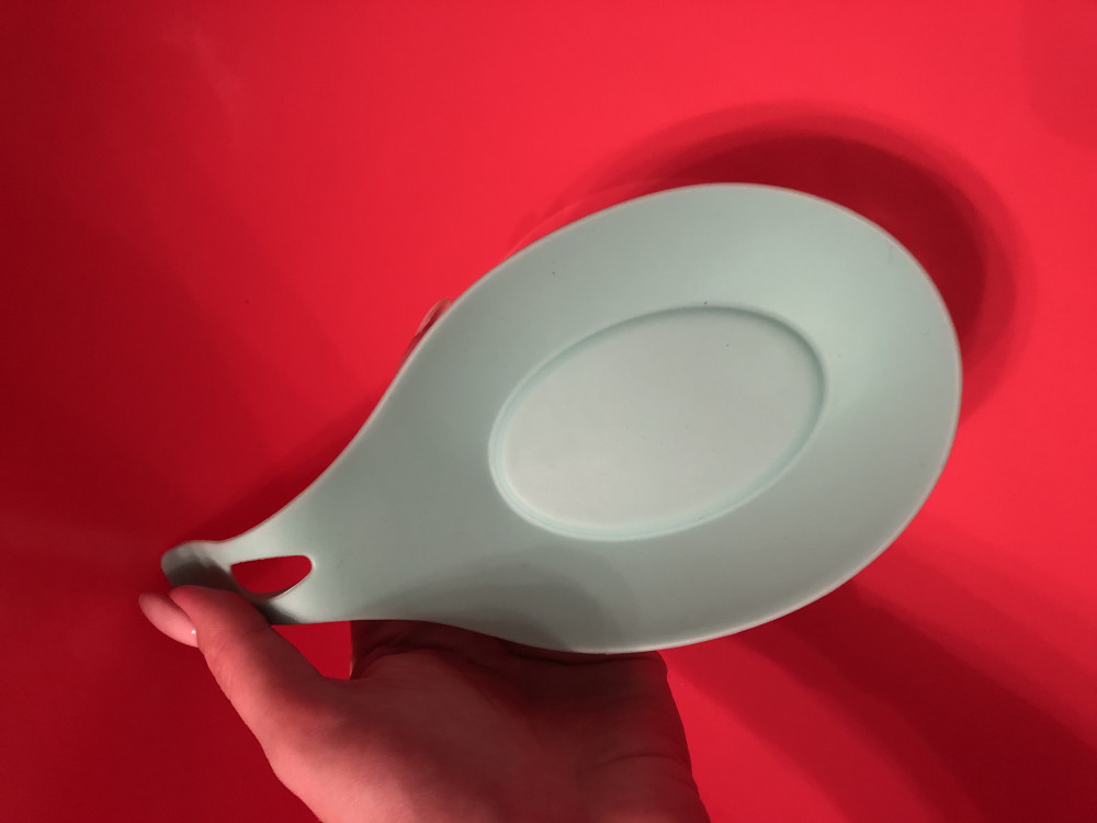 Практичная вещь, не скользит, под ложку удобна, под половник и прочие большие приборы не совсем, немного сдвигается. И да, можно найти в два раза дешевле аналоги (причем один в один), но так как приборы все этой фирмы, решили купить фирменную, пришла фиолетовая.