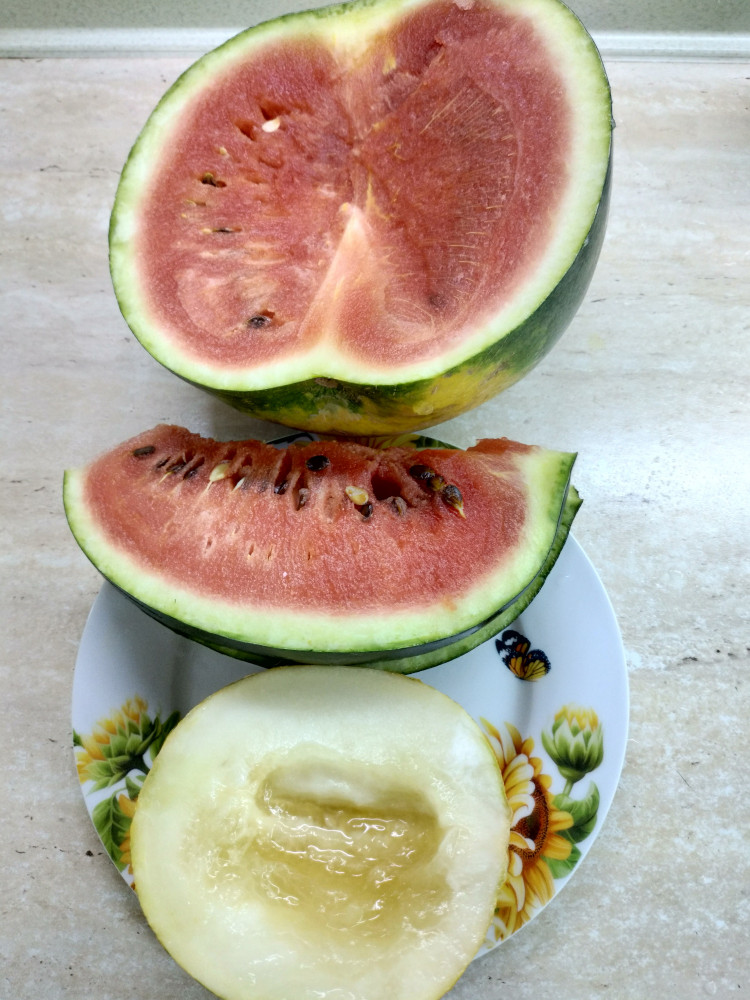 дыни очень сладкие и ароматные! Рядом с дынькой арбуз Огонёк