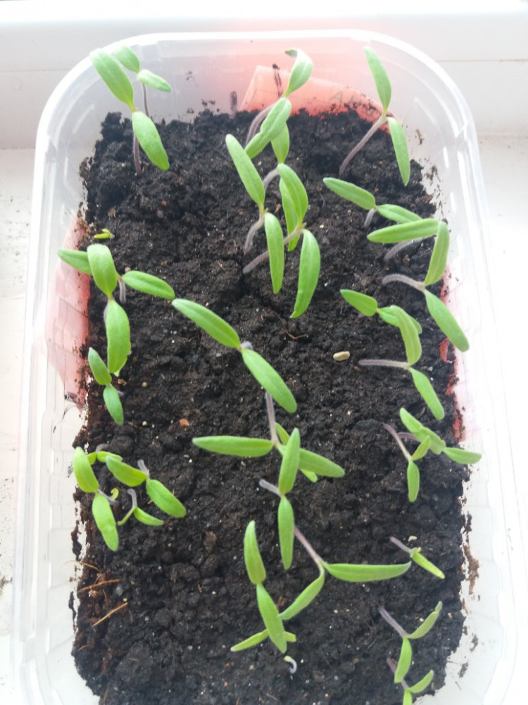Замочила семена в эпине на сутки посадила. 4 марта в контейнер под крышку, 9 марта появились всходы.