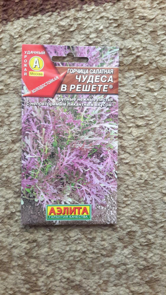 Купила семена эти, но после того как посадила выросла не салатная горчица а листовая. Разочарована.