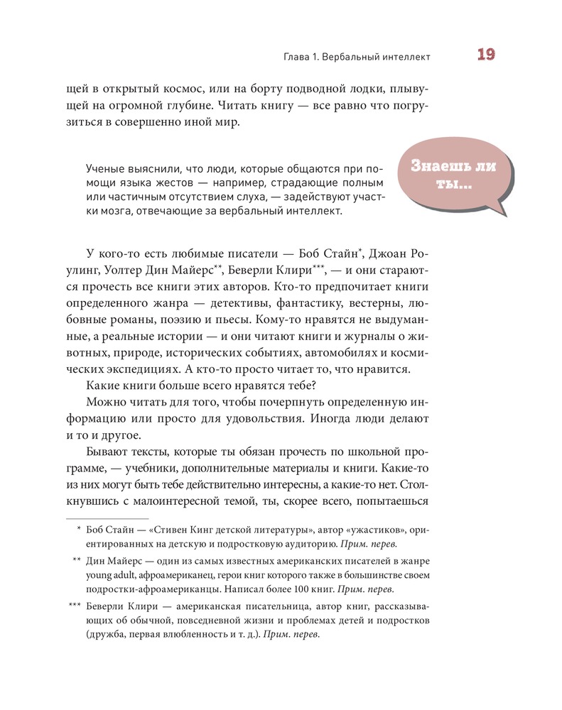 Книга отличная, понравилась детям, да и мне тоже. Книга написана доступным для подростка языком, советы автора, яркие примеры нужные детям, что бы развивать свой интеллект. Спасибо, Flip, за доставку.