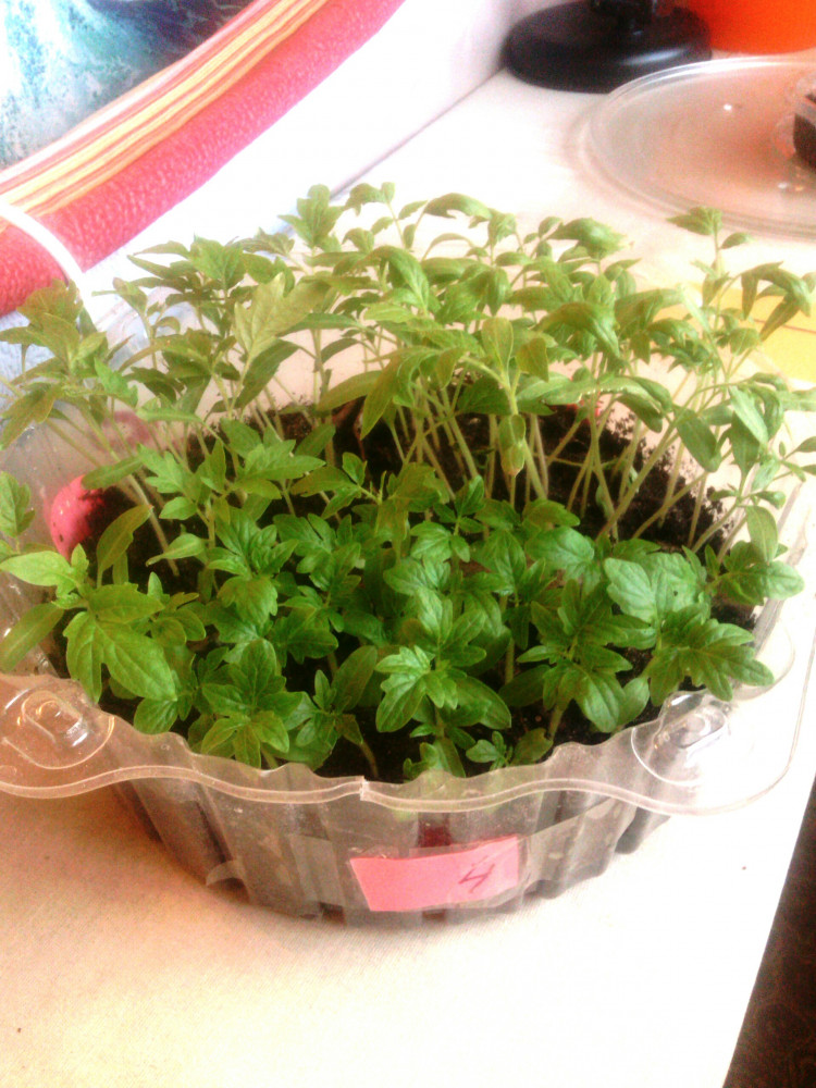 По рассаде видно, что рост будет небольшой, хотя в описании до 2-х метров. На фото хорошо видно разницу с высоким сортом.
