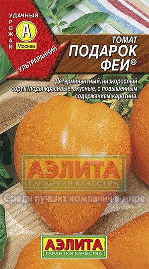Аэлита Семена. Томат раннеспелый «Подарок феи», 0,1 гВ данный момент этот товар отсутствует в продаже. Возможно, у нас найдется аналогичный или похожий товар здесь. Серия: Удачный урожай Раннеспелый высокоурожайный сорт для открытого грунта и пленочных укрытий (созревание плодов наступает на 93-95 день после полных всходов). Растение детерминантное. Плоды красивой, сердцевидной, слаборебристой формы, оранжевого цвета, массой 90-110 г, обладают прекрасным вкусом как в свежем, так и в переработанном виде. С повышенным содержанием бета-каротина. |