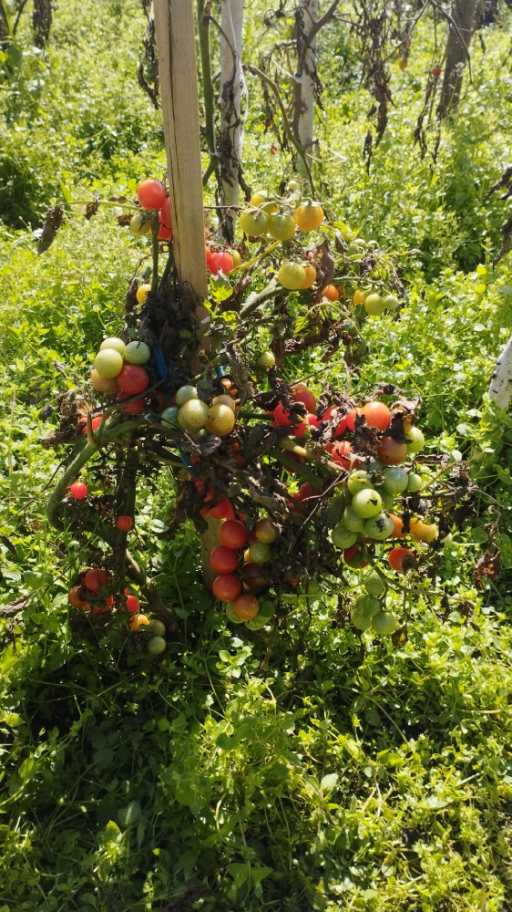 Помидоры выросли от силы 15-20см в высоту. Не такие как пишут на сайте 50-60см. Но помидор усыпанно гроздями. Но ооочень мелкие.