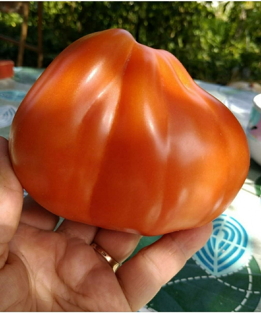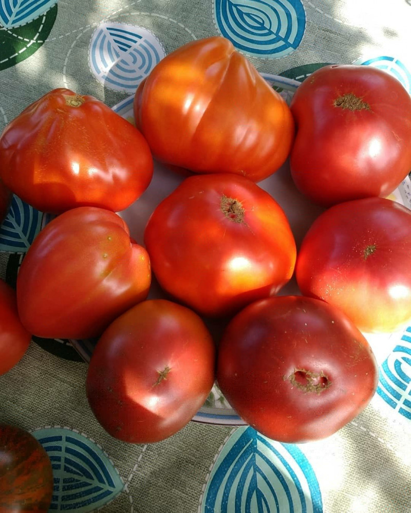 Вряд ли буду сажать его в следующем году, несмотря на то что взошли все семена, пересадку в открытый грунт перенесли отлично, росли хорошо, но плоды настолько тяжёлые, что без хорошей опоры не обойтись. После дождя кусты валятся. Пасынков очень много. Также сорт не устойчив к фитофторе, постоянно идёт борьба без химии, всё же несколько кустов пришлось убрать. Плоды сочные, мясистые, большие, ребристые. Подходит на салат и закрутили соус на зиму "кобра". Спасибо магазину за быструю доставку.