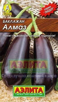 Аэлита Семена. Баклажан «Алмаз», 0.3 гВ данный момент этот товар отсутствует в продаже. Возможно, у нас найдется аналогичный или похожий товар здесь. Серия: Лидер (Аэлита) Пакет с двойным сроком годности. |