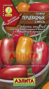 Смесь крупноплодных, перцевидных сортов томата для выращивания в пленочных теплицах и открытом грунте. Состоит из среднеспелых сортов: ПЕРЦЕВИДНЫЙ (плоды красные), ПЕРЦЕВИДНЫЙ ОРАНЖЕВЫЙ (плоды оранжевые) и РОЗО-ВЫЙ БАНАН (плоды розовые). От всходов до плодоношения 110-115 дней. Растения индетерминантные, высотой 1,6-2,0 м. Плоды перцевидной формы, мясистые, массой 100-180 г (от-дельные до 300 г), устойчивые к растрескиванию. Мякоть превосходного вкуса, с насыщенным ароматом. Плоды после съема хранятся до четырех недель, сохраняя прекрасные потребительские качества. Рекомендуются для свежего потребления и кулинарной переработки. Урожайность – 9-11 кг/м2 .