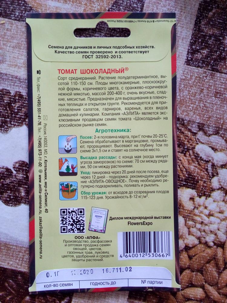 Магазину большое спасибо за посылку: собрана, упакована и отправлена👍🌟👍🌟👍 Семена посеяла, взошли все️🌟 Всходы росли и развивались🌟 Но что выросло на грядке😨: мелкие🌠 и никак не шоколадного цвета🌠фото прилагается. Это минус производителю. А как хотелось их попробовать (по описанию понравились). Разочарована. Кстати, сестра тоже заказывала и тоже самое выросло.
