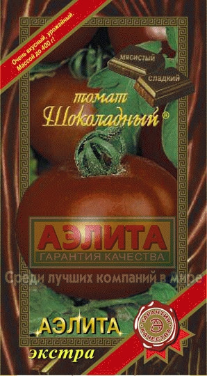 Аэлита Томат «Шоколадный»В данный момент этот товар отсутствует в продаже. Возможно, у нас найдется аналогичный или похожий товар здесь. Сорт среднеранний. Растение полудетерминантное, высотой 110-150 см. Плоды многокамерные, плоскоокруглой формы, коричневого цвета, с оранжево-коричневой нежной мякотью, массой 200-400 г, очень вкусные, сладкие, мясистые. Предназначен для выращивания в пленочных теплицах и открытом грунте. Рекомендуется для приготовления салатов, гарниров, варенья, всех видов домашней кулинарии. |