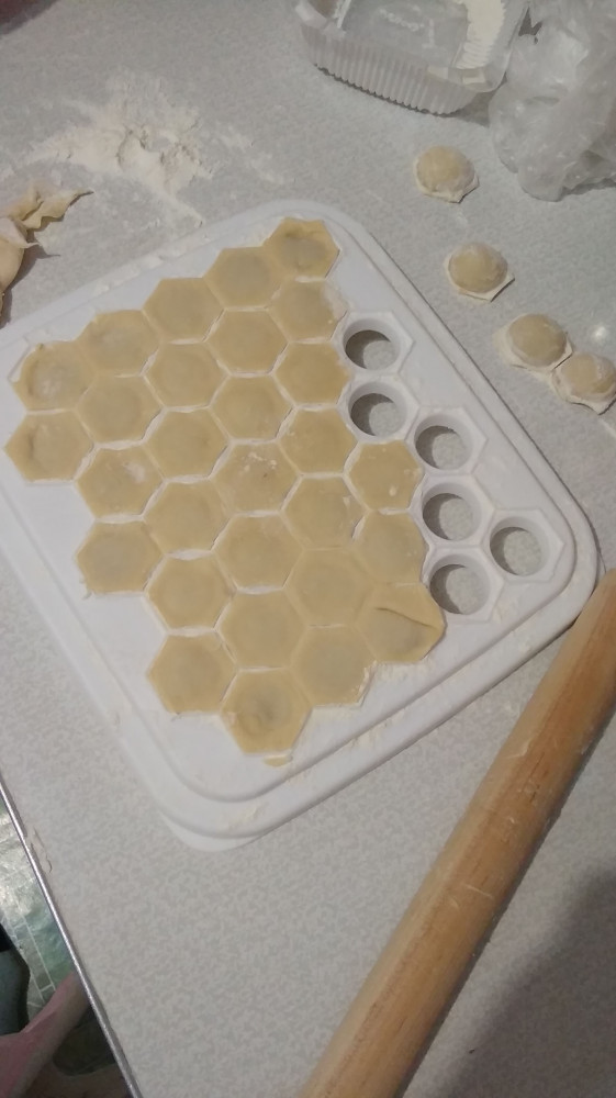 Надо хорошо присыпать мукой саму пельменницу, тогда все как по волшебству происходит, вещь не подвела, но надо приноровиться, конечно)